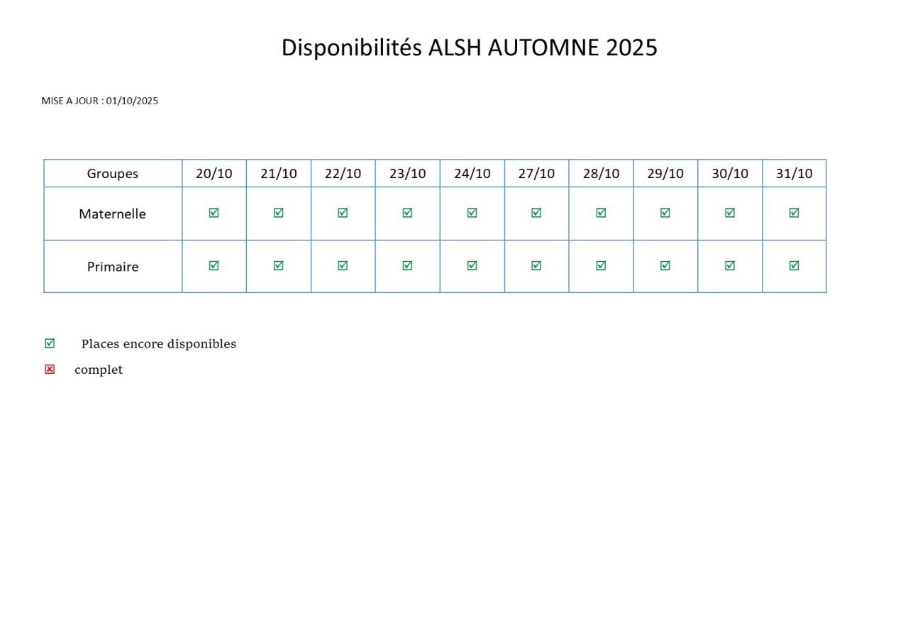 disponibilités ALSH VARETZ - VACANCES AUTOMNE 2025 maj 01/10