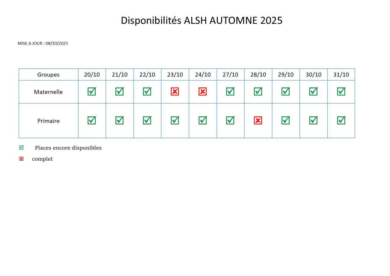 Disponibilités VACANCES AUTOMNE - MAJ 08/10